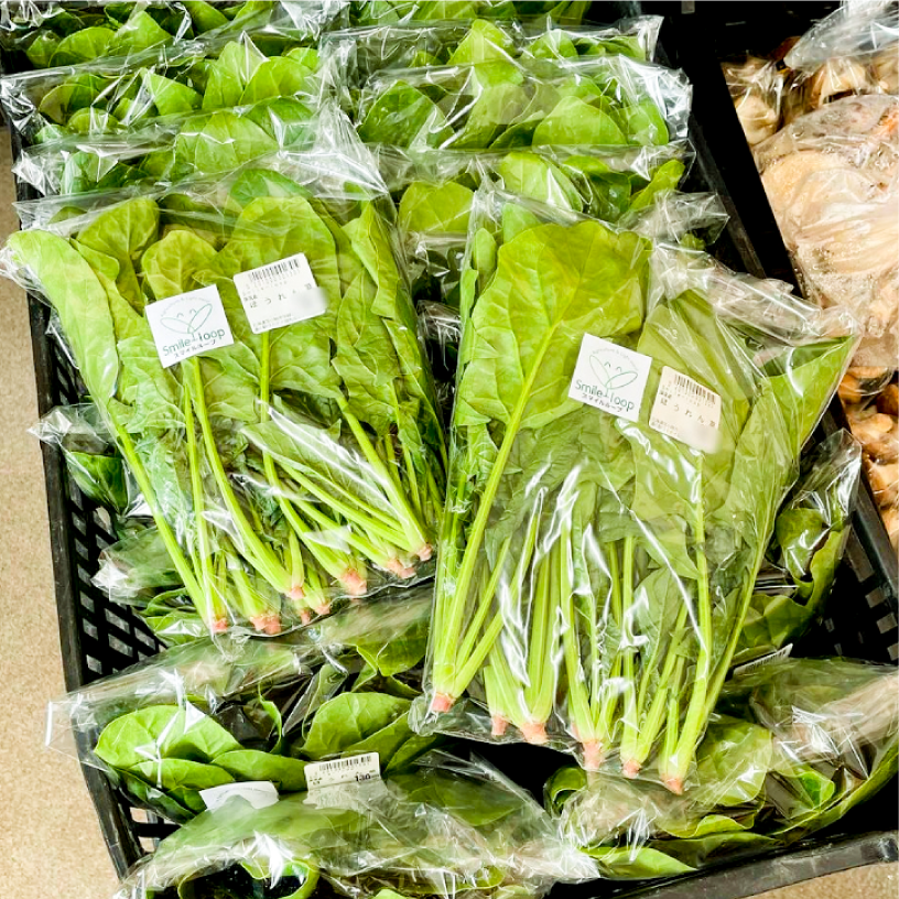 栽培した野菜はリサイクルループの食品加工業者だけではなく、道の駅などにも販売しており、直接手に取って品質を確かめ購入することができます。合わせまして、トマウェーブで作られた肥料の販売も行っております。Smile-loopで栽培され野菜を食べ、「家庭菜園でも出来たら・・・」や「農地でも利用したい」等ありましたらお気軽にご相談ください。